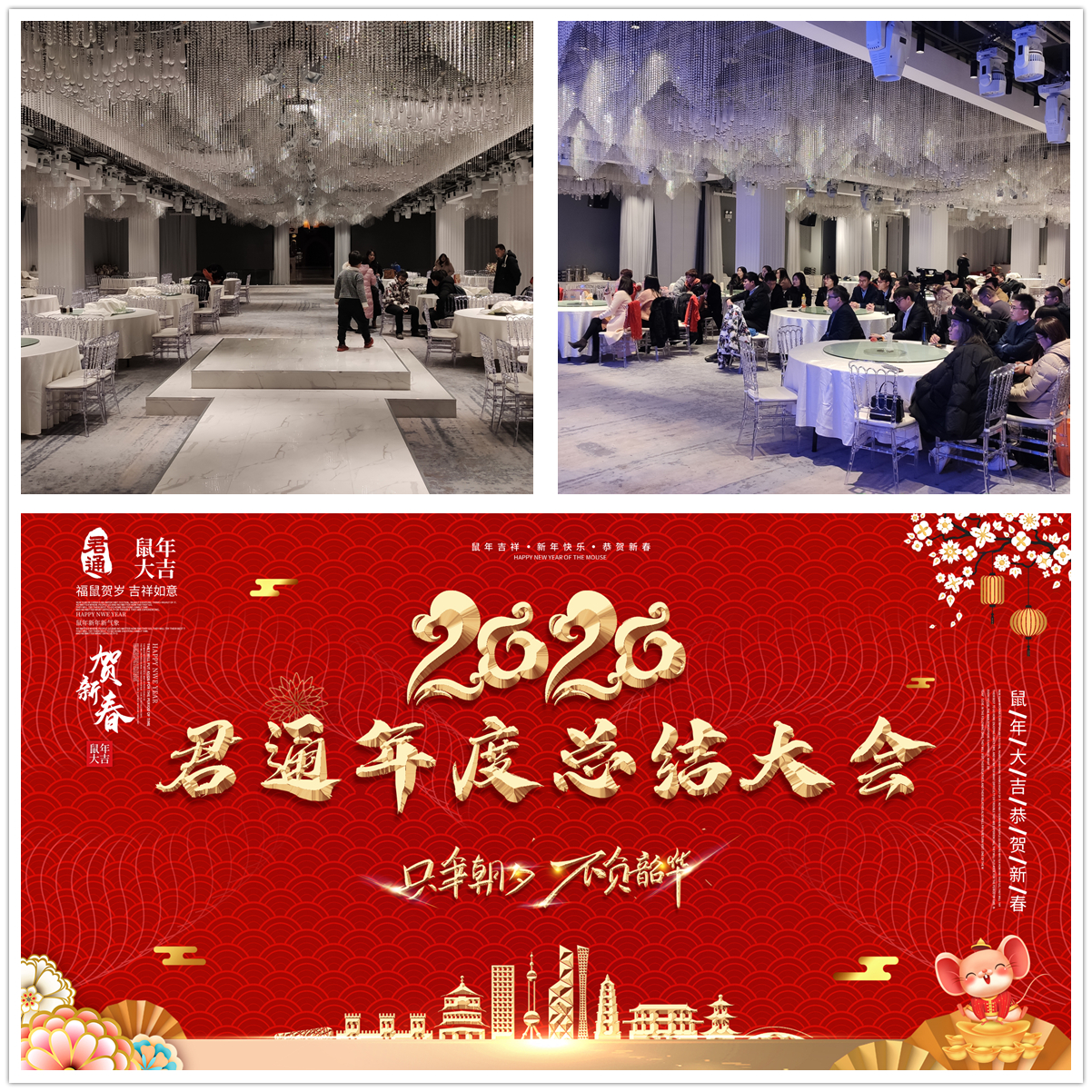 凌晨九點大師紛紜到達年會現場,即便天公不做美可是也反對不了君通人奔赴2020的熱忱,看吧,標致的年會現場讓人不由得拿出手機攝影,在杜工的批示下安排好了年會現場以后,起頭了咱們的個關頭: